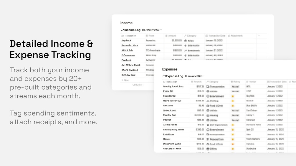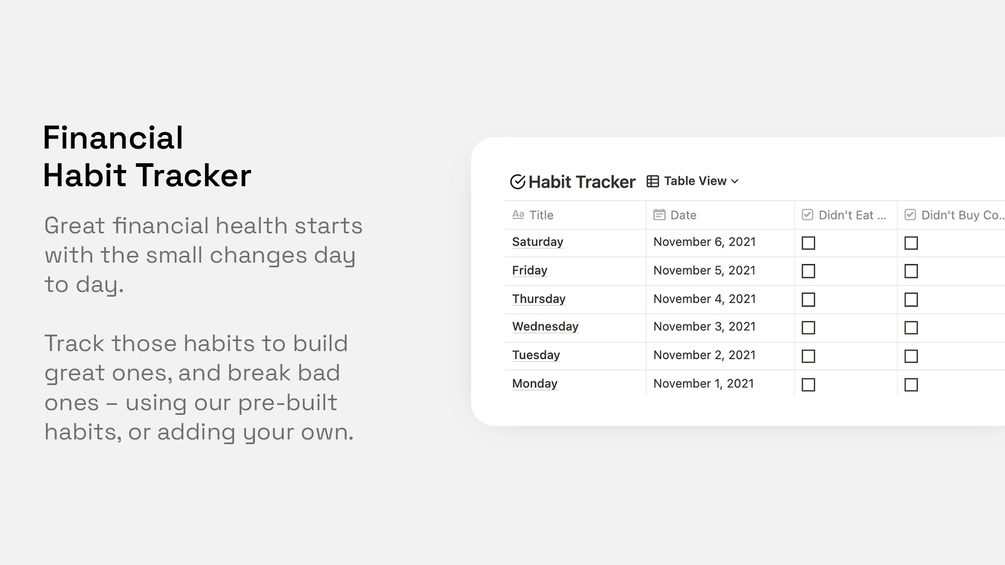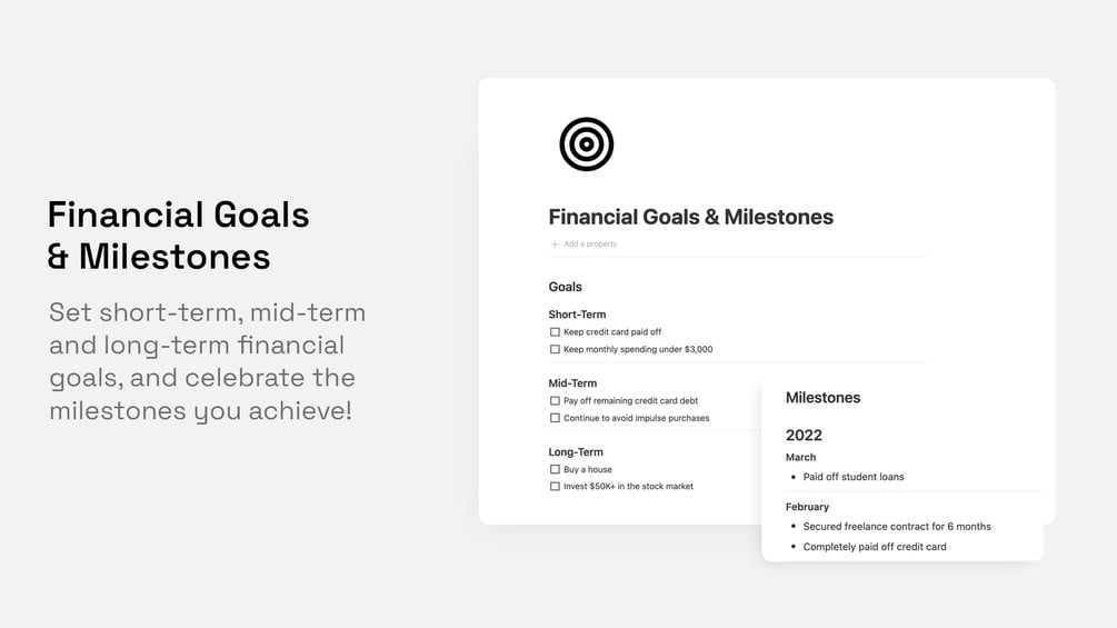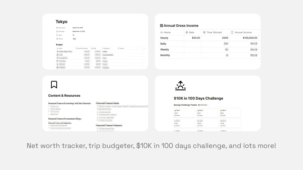 This all-in-one hub features 10+ pre-built templates and tools to make finances fun, including: