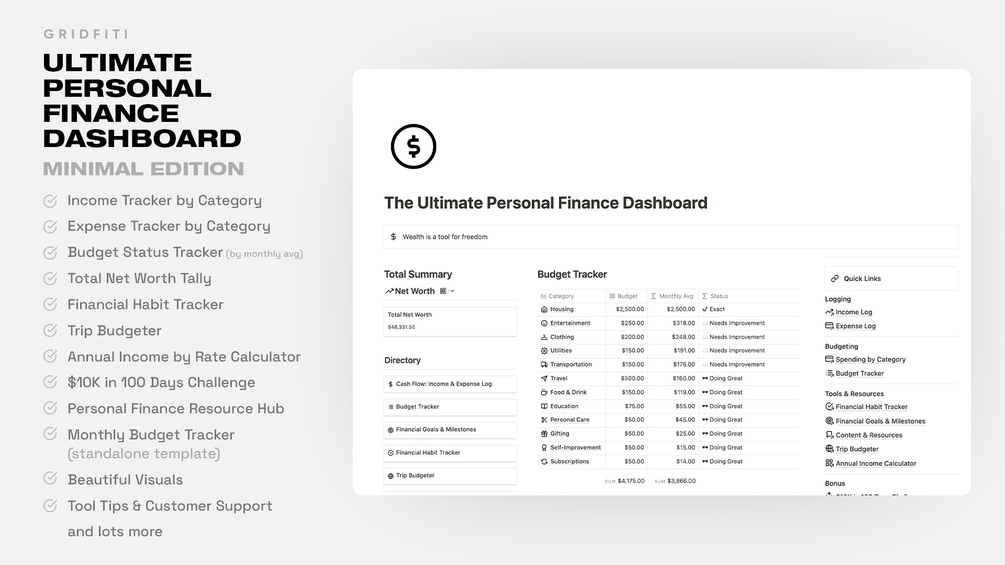 Ultimate Personal Finance Dashboard for Notion [Minimal Edition]