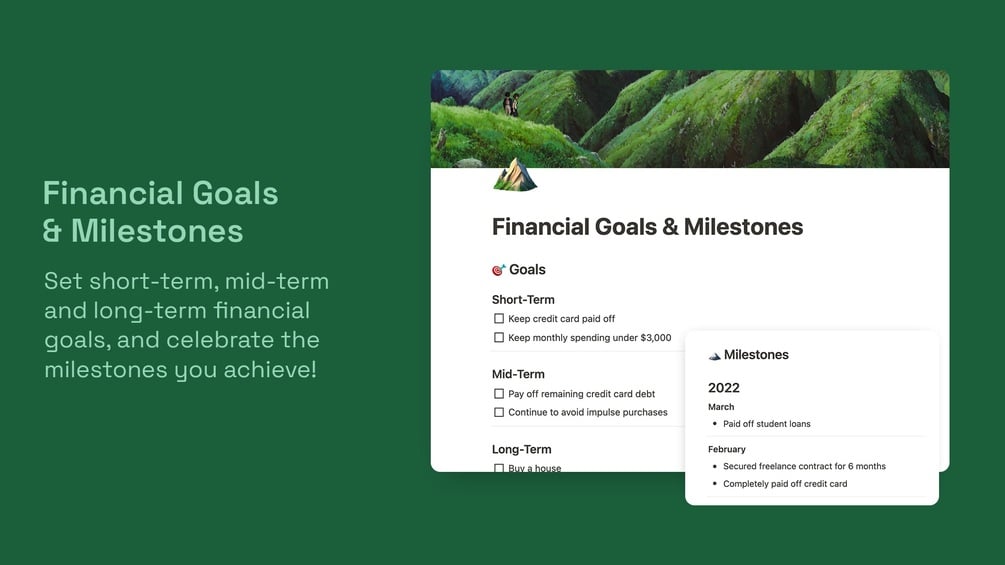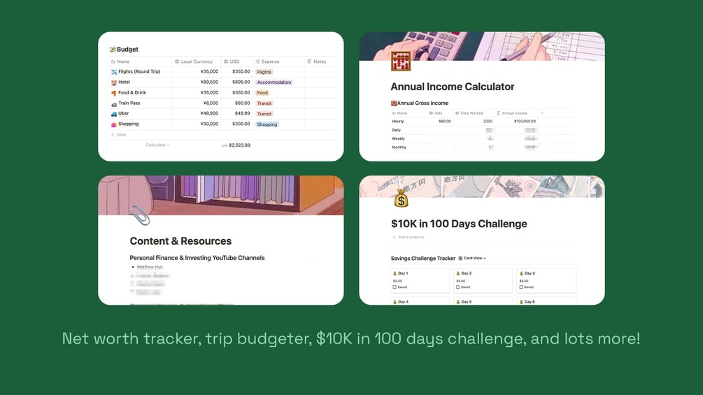 Have everything for your finances in one place with the Ultimate Personal Finance Dashboard for Notion! This all-in-one hub features 10+ pre-built templates and tools to make finances fun, including: